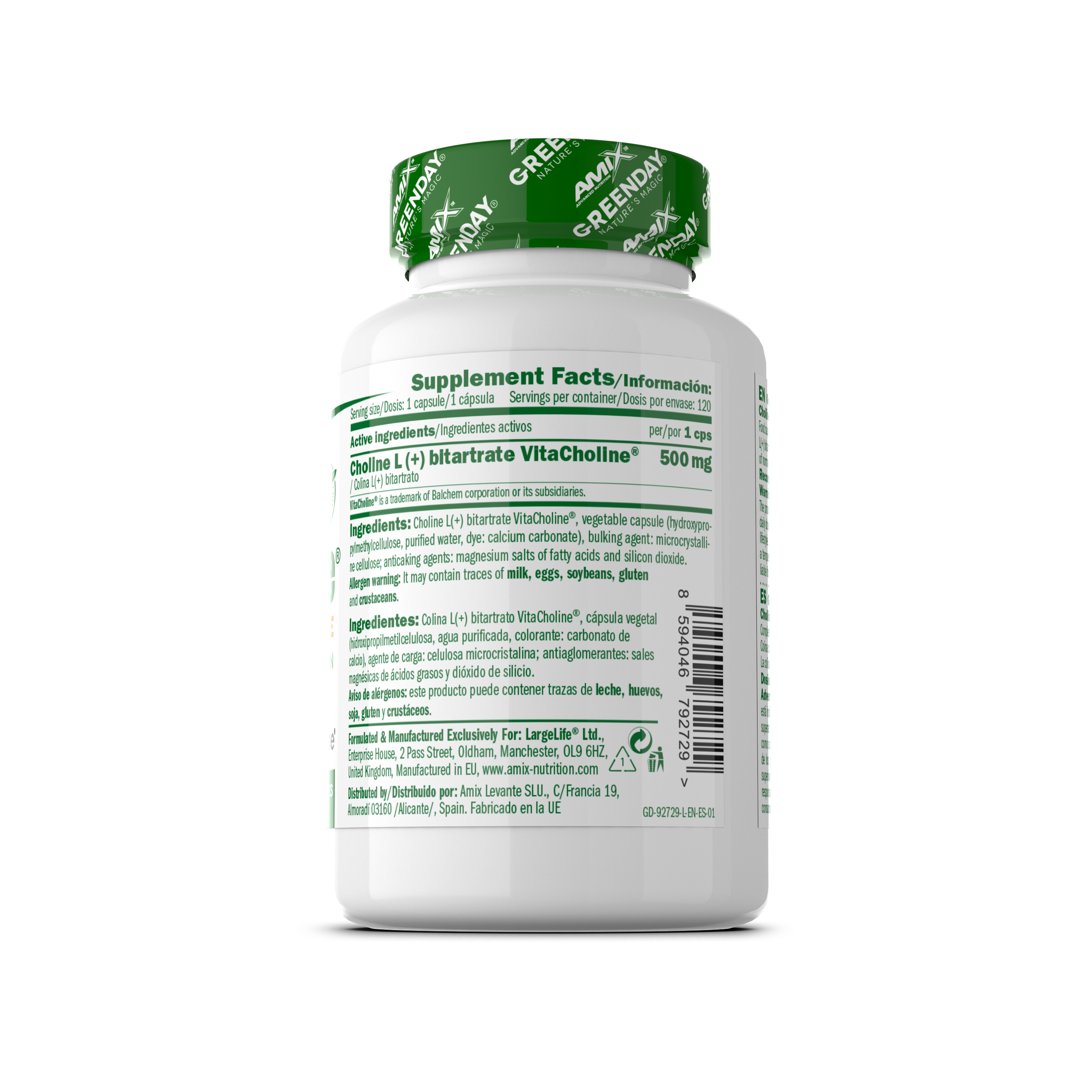 Složení: Cholin L(+) bitartrát VitaCholine ® , rostlinná kapsle (hydroxypropylmethylcelulóza, čištěná